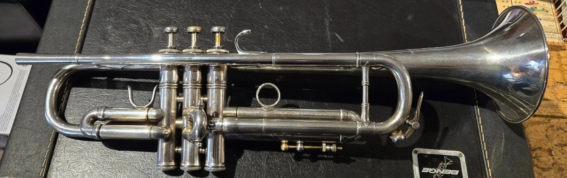 An early 70’s LA Benge trumpet recently came into the shop. LA meaning, Los Angeles. From 1970 to 1972 these trumpets were made in Los Angeles, California.