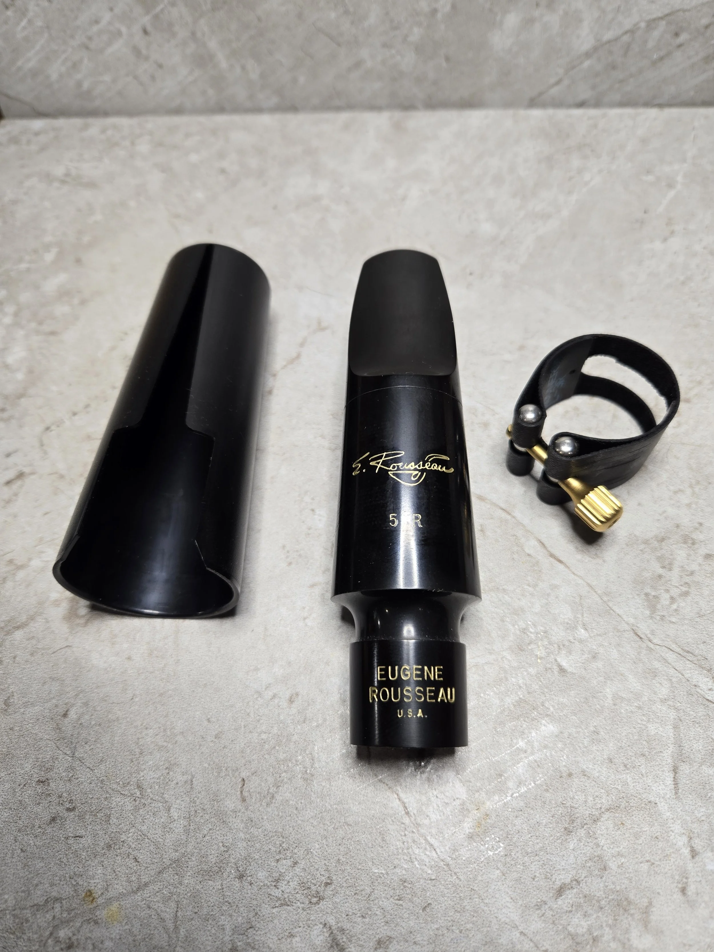 This is a Eugene Rousseau Baritone Sax MP, size 5R that comes with a Rovner ligature & MP cap.
