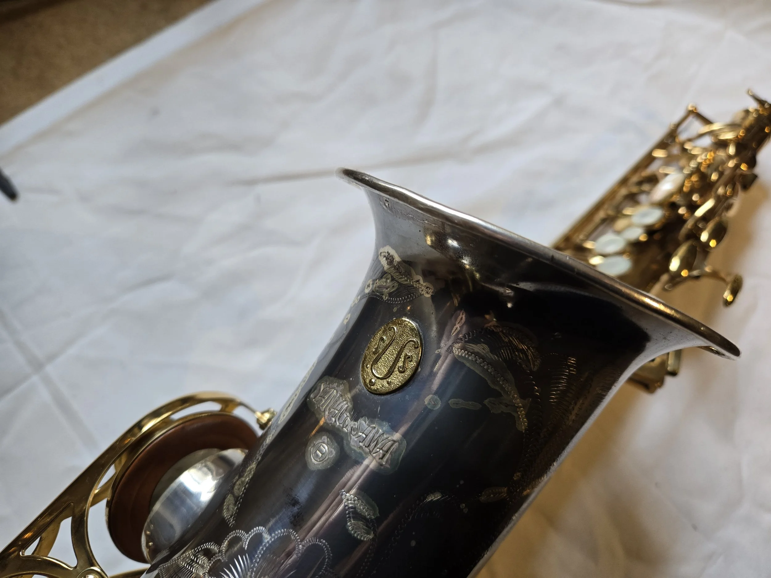 I case you don’t look past my Home Page, I’ll show you some of the new instruments that I have recently acquired. This week I am featuring a Yamaha YAS-62III alto sax that I just finished doing a complete repad on. Of course, this is one of Yamaha’s professional series saxes. As always, I cleaned it, repadded it and put it into a hard shell travel case that is shaped like an alto sax. After I repad each and every horn that I sell I always play them. I like the sound of this sax and the way it projects. For any additional info about this saxophone just scroll to the top of this page and click on Woodwind Instruments for Sale>Saxophones and then scroll down the page until you see this particular sax. If this horn doesn’t tickle your fancy there are several other alto and tenor saxes of varying prices on the page. I’m sure you can find something that you might like. If you don’t see something that you like just call me at the shop, 434-973-4299 and ask if I have anything in the process of being repaired. I constantly am keeping my eye out for other instruments to purchase.