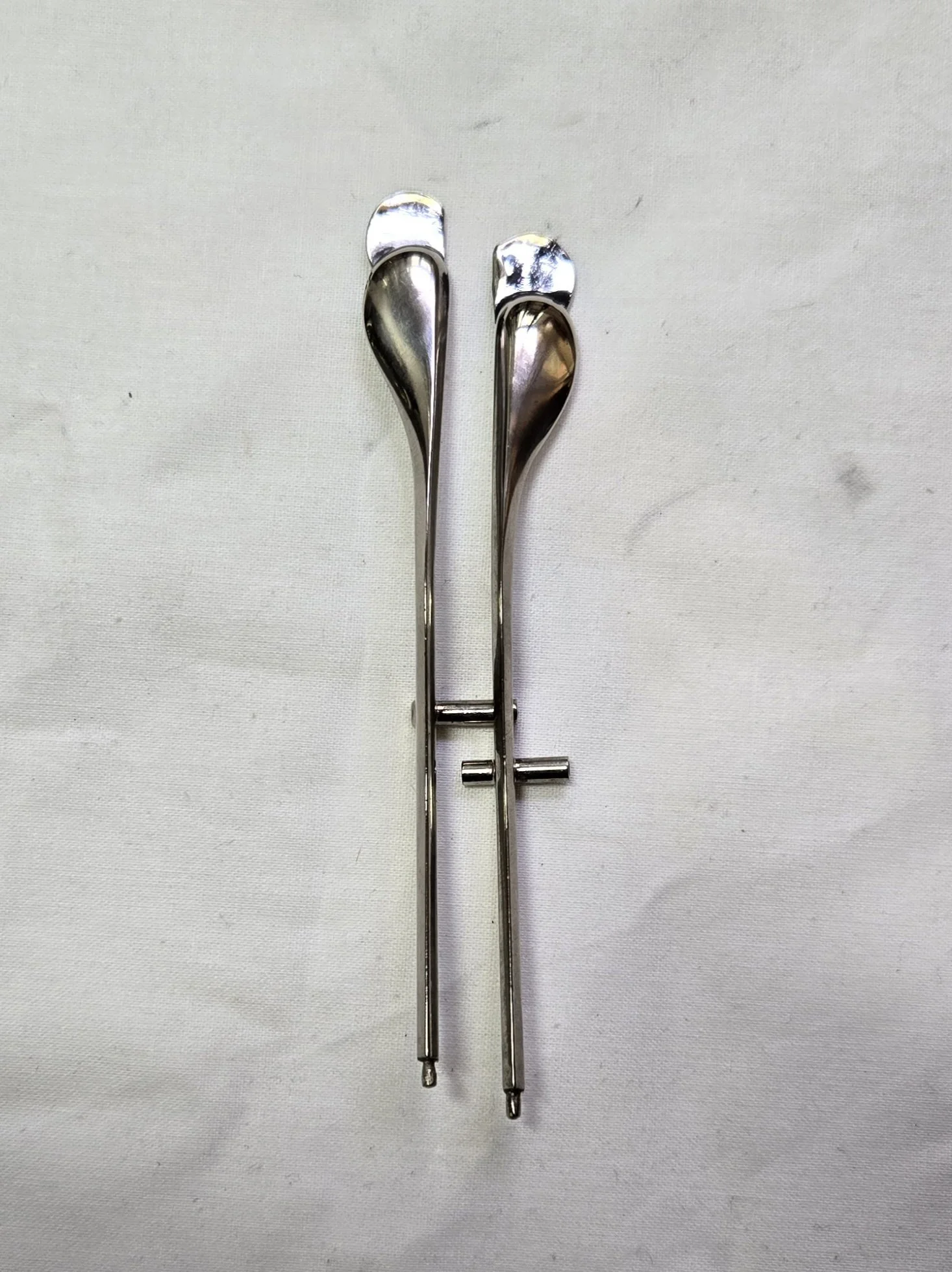 The lower clarinet in the photo is a standard, student model Yamaha. The lowest note that it will play is a low E. That’s the key to the far right in the photo. This instrument is 23.5 inches long. The upper clarinet is a professional model Buffet clarinet which has several additional keys. However, the one we’re looking at today is the key to the far right of the photo. This is a low Eb key. Consequently, the lower joint, the section where this key is attached is about an inch longer, 24.5, to accommodate this extra key. Even after repairing band instruments for 51 years, I have rarely seen one of these extra-long clarinets. I like unique instruments and this one falls under that category.