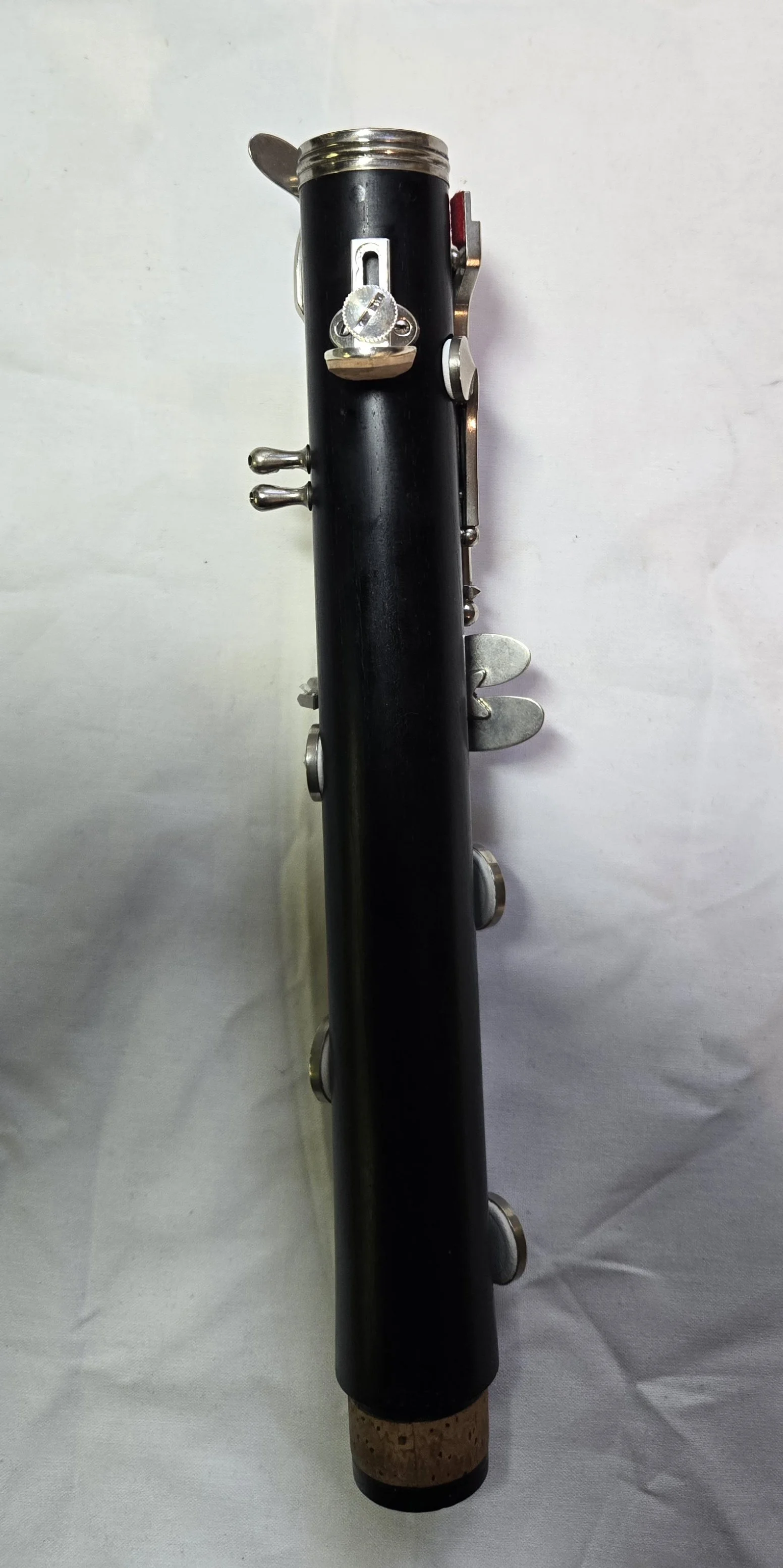 This is a Holton “A” clarinet that was made in the late 1890’s and it has a fingering system that you rarely see, it’s called the Albert system. The Albert system dates back to the early 19th century. The Albert system is still used, mainly by clarinetists who perform Belarusian, Russian, Ukrainian, Greek and Turkish folk music, Klezmer, and Dixieland styles. Often these musicians prefer the Albert system due to the ease of slurring notes provided by unkeyed tone holes. Actually, back in 2000 I was in Munich, Germany for a couple of weeks and I saw an accordion player and a clarinet player playing in the center of town. The clarinet player was wearing lederhosen, an Alpine hat with a feather in it and playing an Albert system clarinet. How quaint!