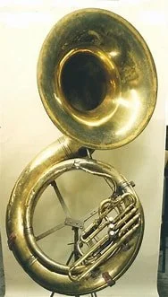 The second photo is a sousaphone which was made by J.W. Pepper, in 1895, at the request of John Philip Sousa. Of course, John Philip Sousa was a director of marching bands during that time. It was designed to rest on your shoulder so you could easily march and play. These “big boys” weigh in between 28 to 35 lbs. depending on the thickness of the metal. A sousaphone is not a tuba, or I guess you could say that it is a type of marching tuba. Sorry, this is just a pet peeve of mine. I hear many people call a sousaphone a tuba. It’s kind of like calling a pickup truck and tractor and trailer.