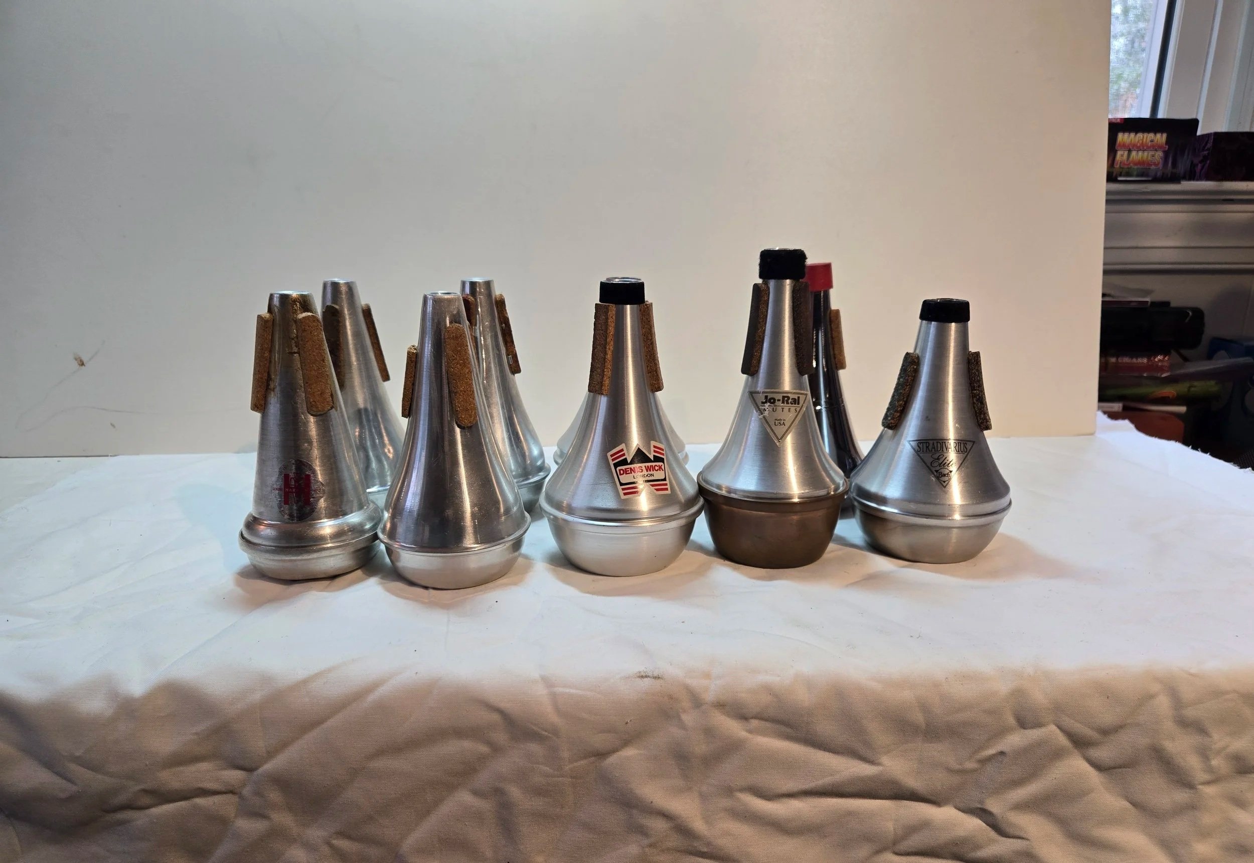 There are 3 Leblanc Vacchiano mutes, a Humes & Berg, 2 Denis Wick, a Jo-Ral, a Bach and a no name. New, these sell for $40.00.